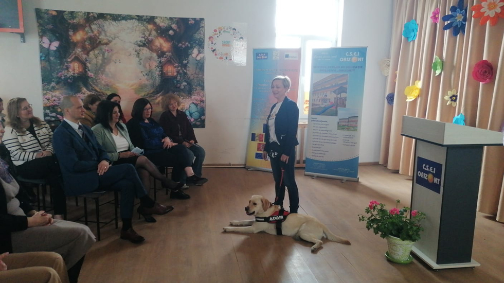*beneficiile terapiei asistate de animale (prof. Hărdălău Laura și câinele terapeut Adam);