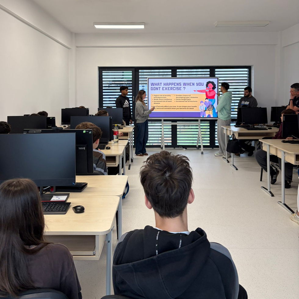 Vizita s-a încheiat cu o sesiune practică în sala de fitness, unde elevii au lucrat alături de studenți internaționali ai Universității din Oradea, proveniți din Franța, Nigeria, Pakistan, Egipt, Qatar, Mexic și România. Atmosfera a fost entuziastă, iar elevii au declarat că își doresc să revină pentru noi activități.