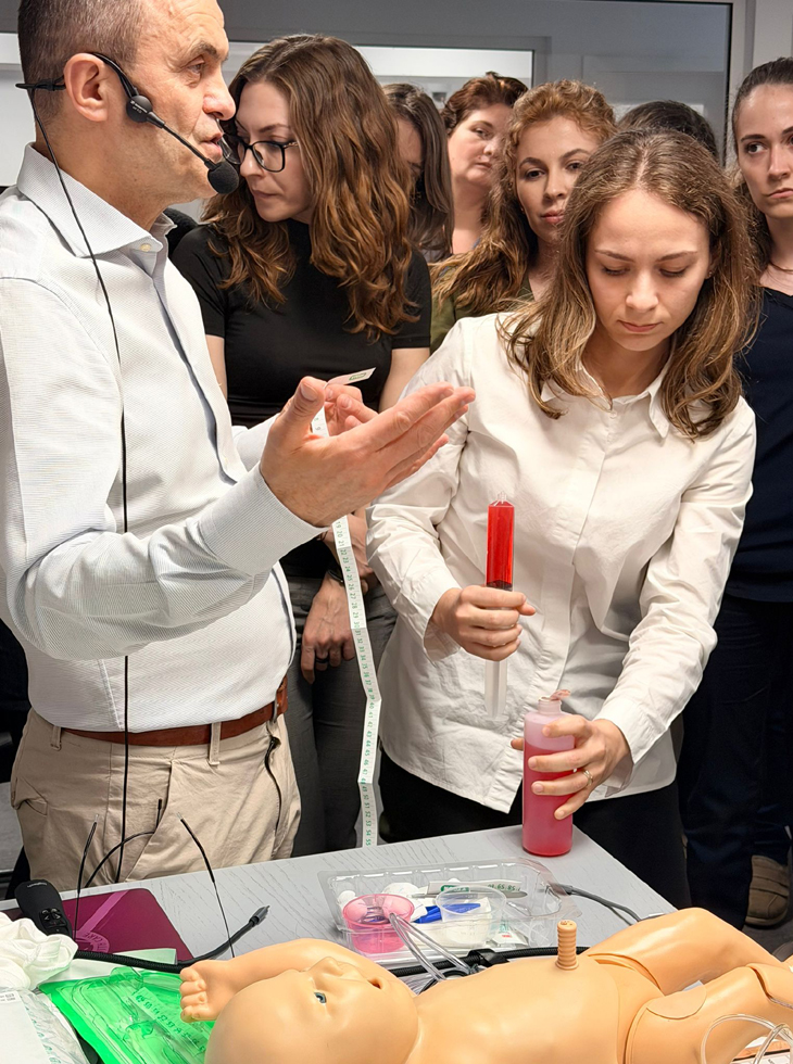 Pe parcursul celor două zile, programul a inclus atât sesiuni teoretice, cât și workshopuri practice, acoperind principalele arii: pregătirea pacientului și controlul infecțiilor, tehnici de acces vascular (periferic, central, ombilical), îngrijirea și monitorizarea liniilor vasculare, proceduri invazive esențiale (toracocenteză, puncție lombară), utilizarea ecografiei (POCUS) în ghidarea procedurilor, aborduri avansate (ECMO, CRRT), managementul postprocedural și prevenirea complicațiilor, hemodializa la nou-născut.