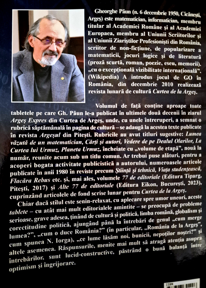 Am primit la redacţie (Biblioteca Universității ,,Agora" din Oradea), ,,Biblia" domnului Gheorghe Păun, matematician, informatician, membru titular al Academiei Române și al Academiei Europaea, membru al Uniunii Scriitorilor și al Uniunii Ziariștilor Profesioniști din România, scriitor de non-ficțiune, de popularizare a matematicii, jocuri logice și de literatură (proză scurtă, roman, poezie, eseu, memorii), ,,cu o excepțională vizibilitate internațională" (Wikipedia). A introdus jocul de GO în România, iar din decembrie 2010, realizează revista lunară de cultură ,,Curtea de la Argeș"..