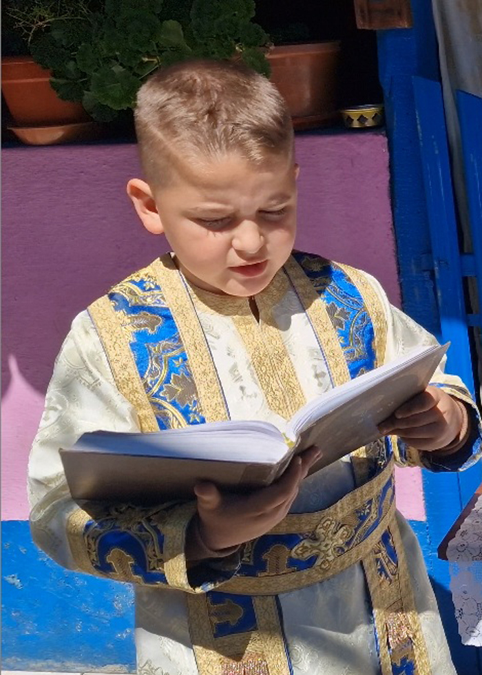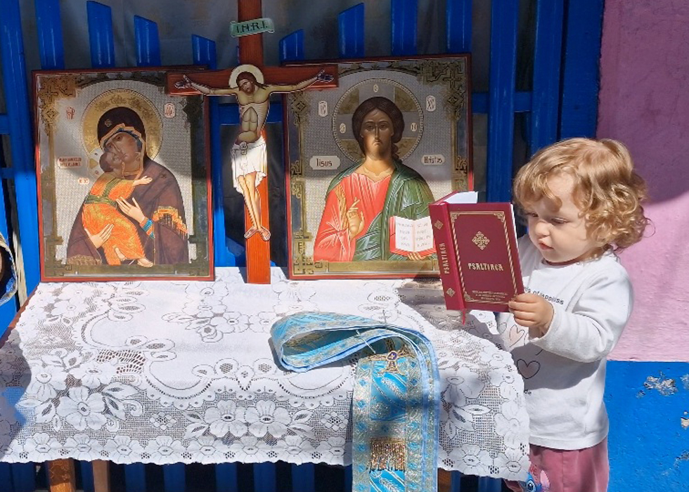 Dar, Andrei nu este chiar singur în altar, pentru că tot mai des este vizitat de sora sa, Antonia-Maria, care în 5 aprilie a împlinit doi anișori, și se dovedește foarte atrasă de cele două cărți de pe masa din altar, Ceaslovul și Psaltirea (ediția 2022); iar din când în când se apropie și sărută icoanele, icoana lui Iisus Hristos și a Maicii Sfinte...