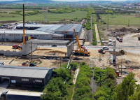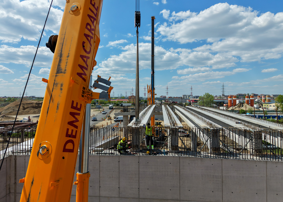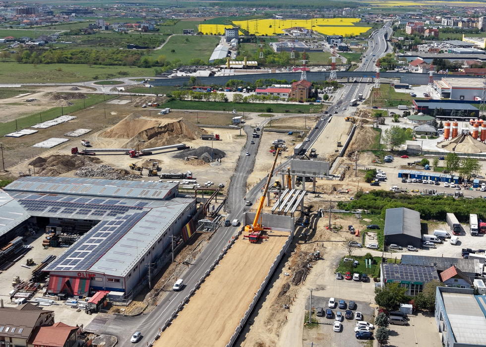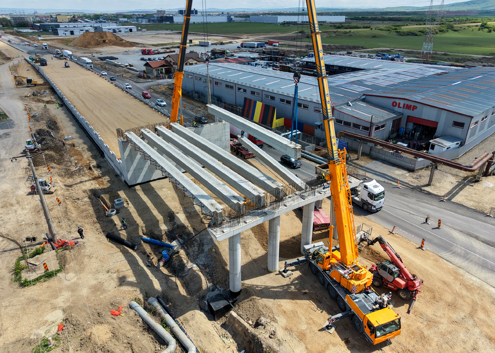 Miercuri, 22 aprilie 2026, a început montarea celor 24 de grinzi de la pasajul rutier suprateran de pe Centura Oradea, la intersecția cu calea ferată care leagă Oradea de Băile Felix.