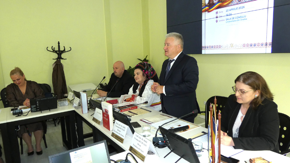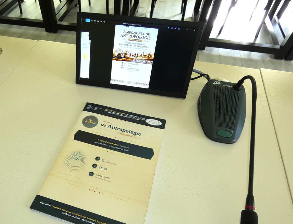 În sala Consiliului de Administrație al Universității din Oradea s-a desfășurat, miercuri, 22 aprilie 2026, Simpozionul de Antropologie al Facultății de Litere, ediția a X-a, aniversară. Tema acestui an: Tradiție și actualitate în cercetarea etno-folclorică la Facultatea de Litere. Organizată și moderată de prof. univ. dr. habil. Florin Cioban, de la Facultatea de Litere, director al Centrului de cercetare al schimbărilor culturale naționale în contextul globalizării, manifestarea științifică a avut două părți.