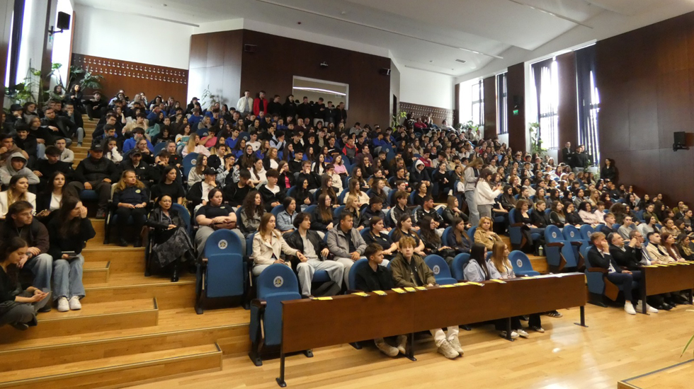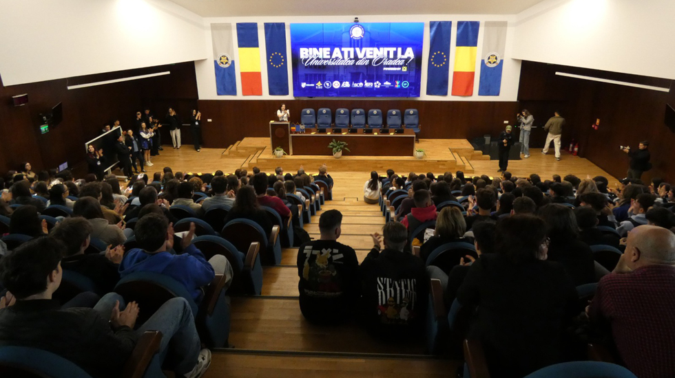 Aula Magna a Universității din Oradea a fost, luni, 27 aprilie 2026, mult prea mică pentru sutele de elevi din oraș și nu numai veniți să ia parte la prima zi de evenimente din seria celor programate de-a lungul „Săptămânii Studenților Universității din Oradea".