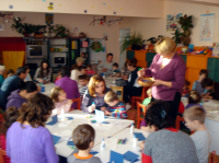 Părinții, alături de copii, la confecționat felicitări și podoabe
