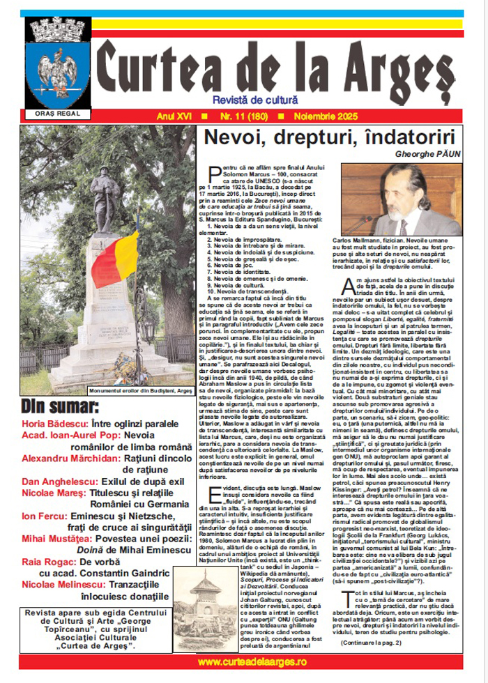 Revista de cultură ,,Curtea de la Argeș”, numărul pe noiembrie